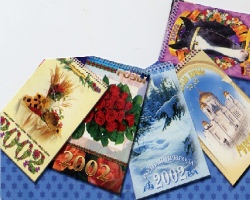 При помощи трафаретного лакирования можно создавать интересные визуальные эффекты. Например, при создании «зимних» открыток, можно применять матовые лаки с эффектом «изморози». Этот лак может имитировать зимние узоры из-за своей структурной поверхности.